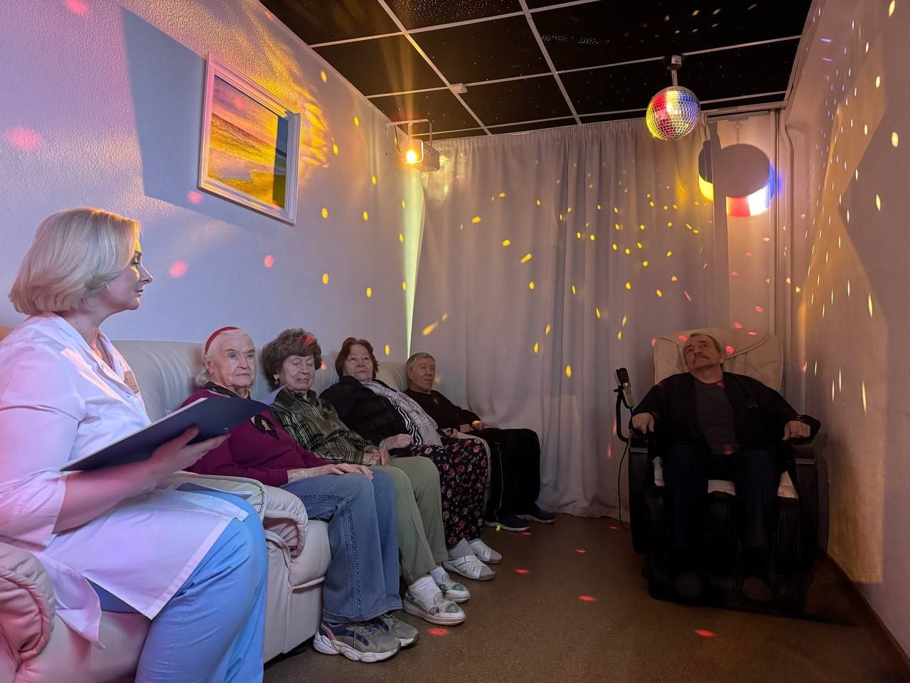 В геронтологическом центре «Западный» прошло групповое занятие «Искусство релаксации», посвящённое техникам расслабления и обретения умиротворенного состояния. Проживающие в комфортной обстановке учились снимать мышечное напряжение и успокаивать ум, находя ресурсы для восстановления душевного равновесия.