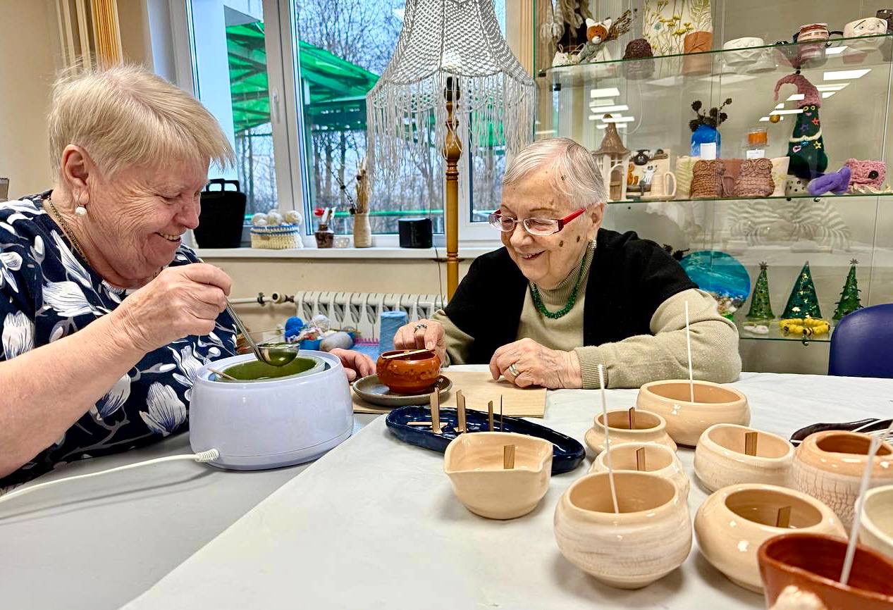 В мастерской Геронтологического центра «Западный» воцарилась предновогодняя сказка! Наши мастерицы создавали праздничные подсвечники. Участницы погрузились в атмосферу творчества, помогая друг другу: кто-то заботливо плавил, кто-то аккуратно держал заготовки с фитилем, а другие с любовью заливали их расплавленным воском.