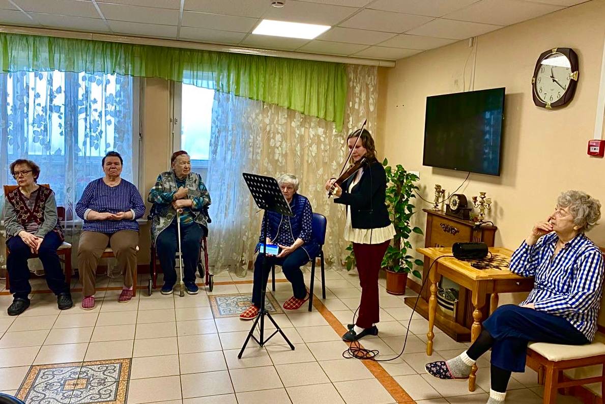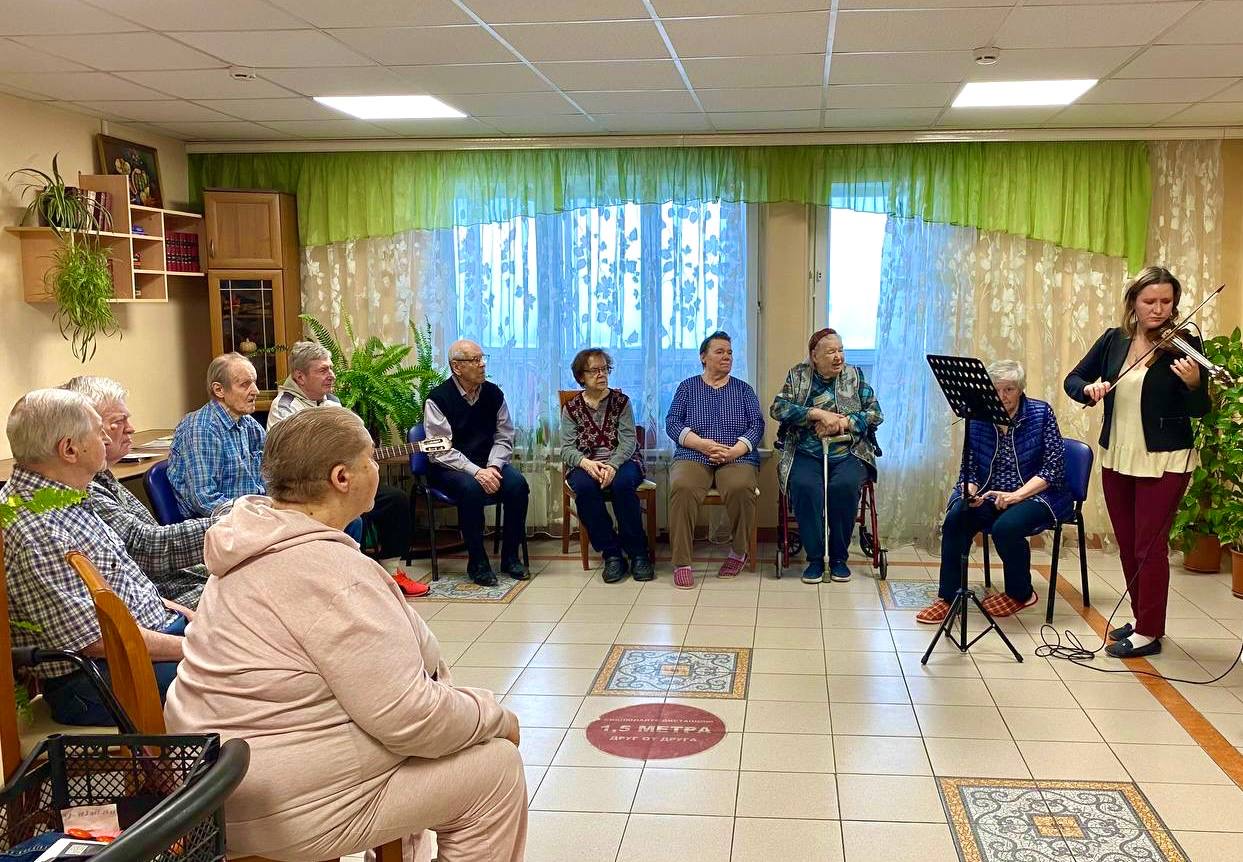 Ода элегантности и воплощение чувств и страсти - сегодня в Геронтологическом центре "Западный" в исполнении прекрасной скрипки ожили барочные композиции, бессмертные хиты Фрэнка Синатры и Эллы Фицджеральд. Представьте себе: мягкое бархатистое тепло, которое шепчет о романтических вечерах. Каждый изгиб струны — это эмоция, а переход — выражение внутренней глубины.